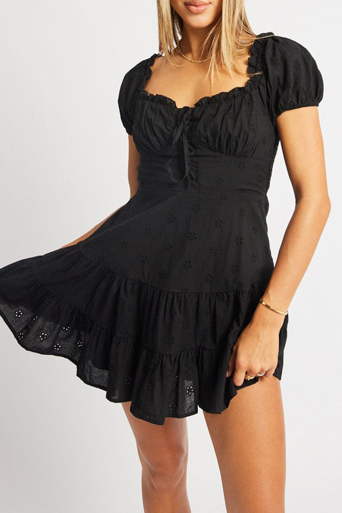| Features | Lined, Puff Sleeves, Shirred Back, Front Ribbon Detail |