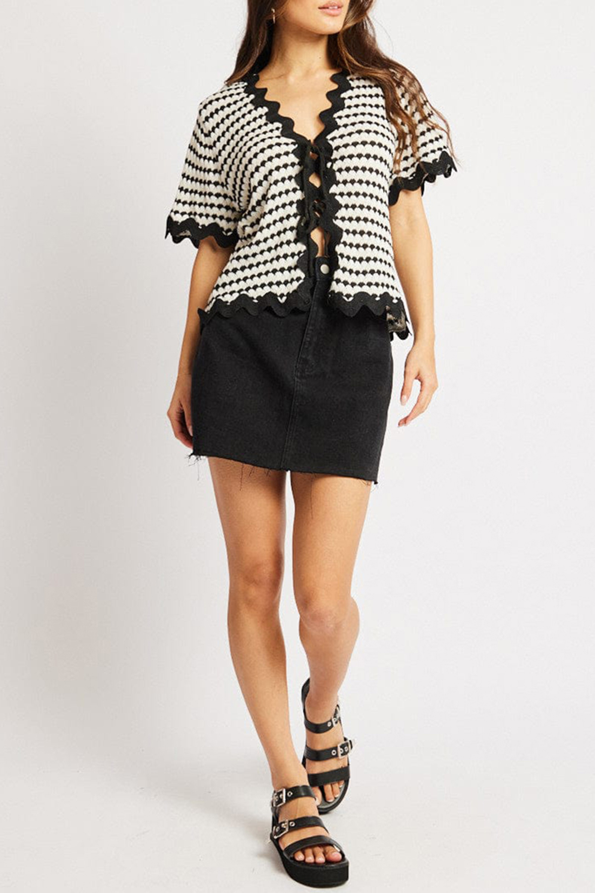 | Features | Knitted, Contrast Ric Rac Trim, Tie-Up Front |