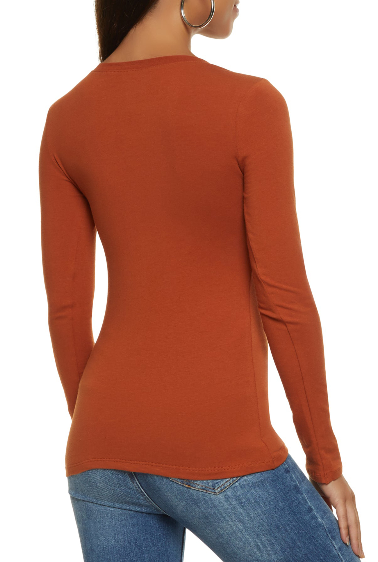 Meet your new go-to for effortless style — the Solid color long sleeved top. Whether you're dressing up for a casual day out or layering for a cozy night in, this timeless piece is designed to keep you looking chic and feeling comfy. Its classic fit and clean crew neckline make it a versatile staple that never goes out of style. Perfect for those who want a simple yet stylish addition to their wardrobe, this tee is all about making your everyday outfits pop with minimal effort.