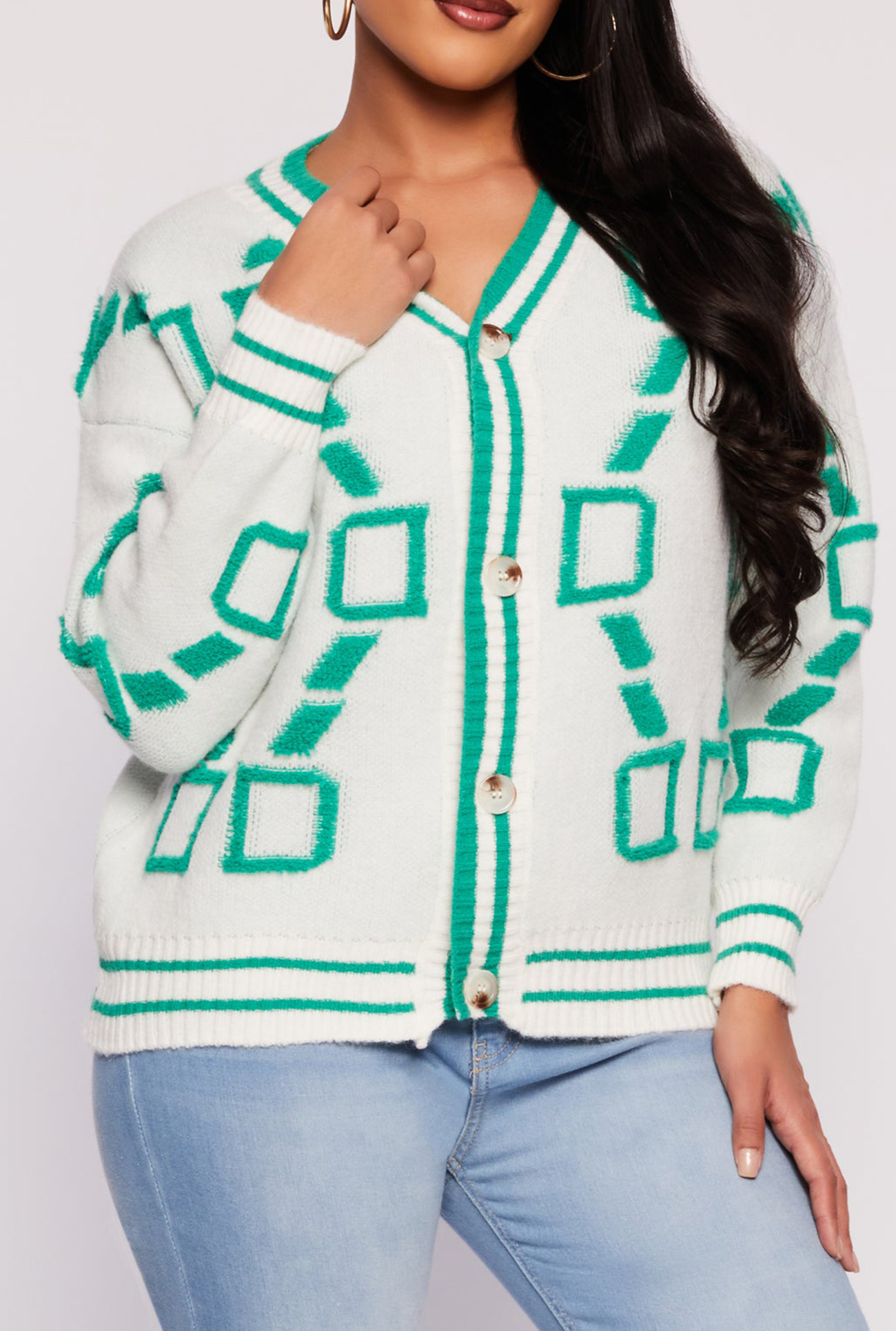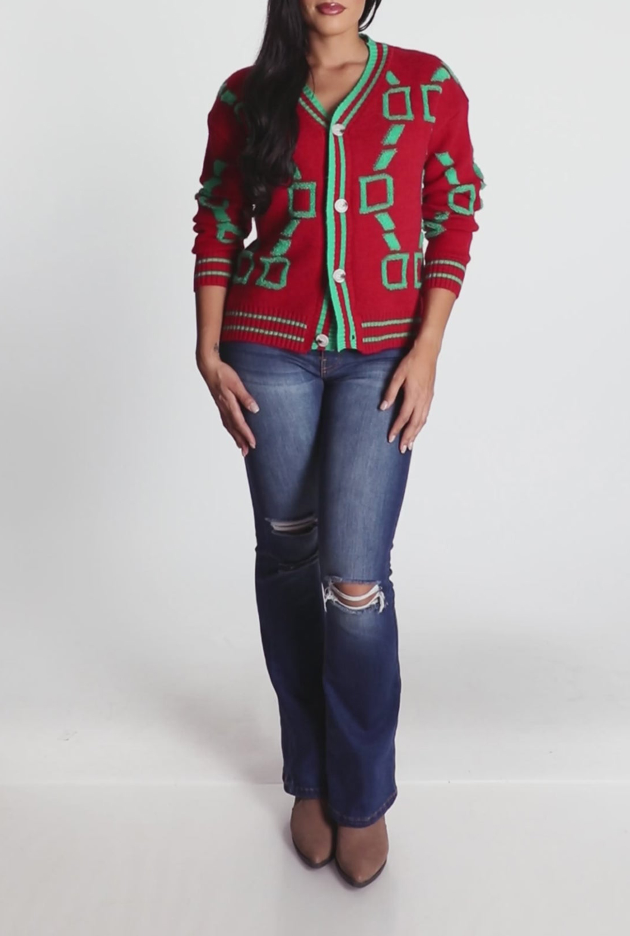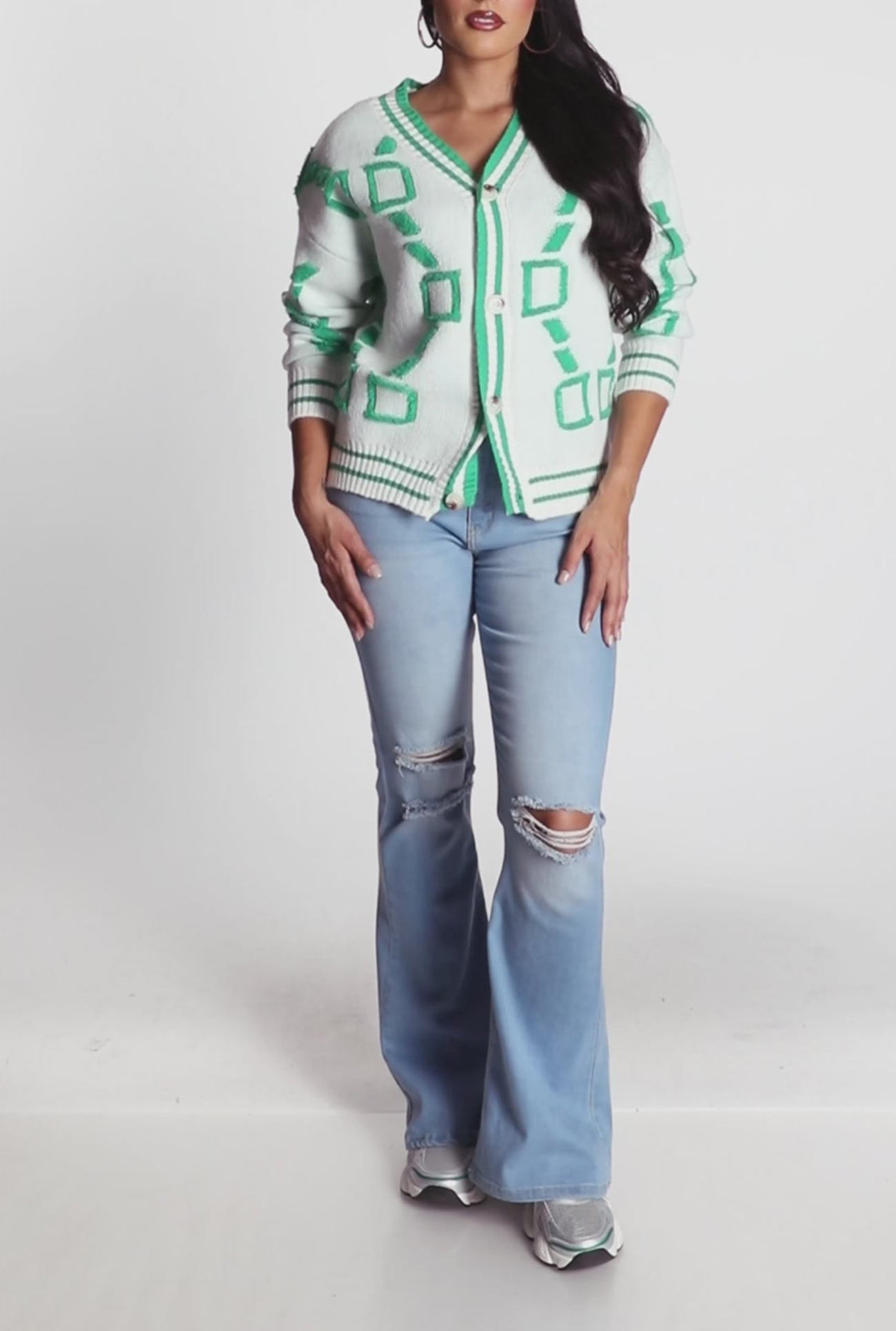 - Features a flattering V-neck and long sleeves for versatile styling